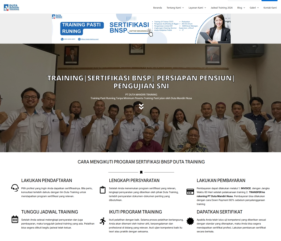 Duta Training Website Penyedia Pelatihan BNSP Terbaik